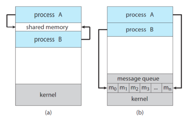 - Two fundamental models of IPC : shared memory, message passing.