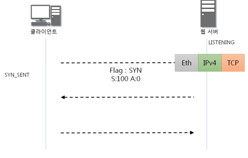 CLIENT : PACKET을 보내고 SYN_SENT 상태가 된다.