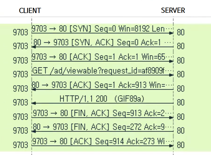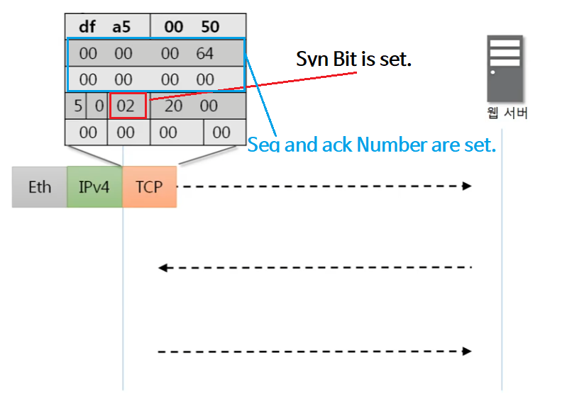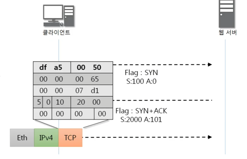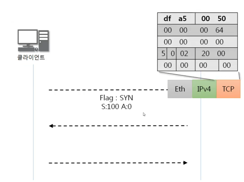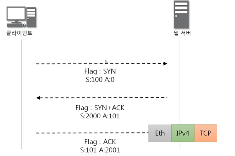 ![]() 이런 과정을 3-Way handshake라 부른다. (Flag가 Setting 되어 패킷을 주고 받음) |