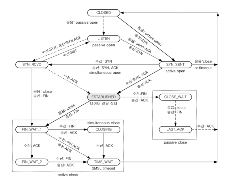 Client가 Port를 사용할 때 Active open 이라 한다. 능동적인 Open은 Client, 수동적인 Open은 Server.(서버는 고정되어 계속 열려 있음)