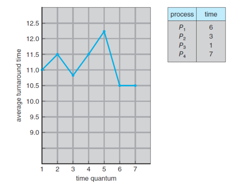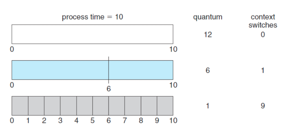 RR algorithm은 Time slice를 얼마나 주냐에 따라 성능이 달라진다.
