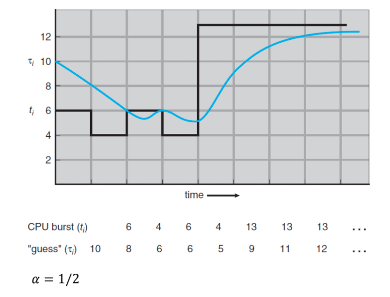 완벽하게 CPU burst를 계산해서 정렬할 수는 없기에 예측을 해서 구현한다.
