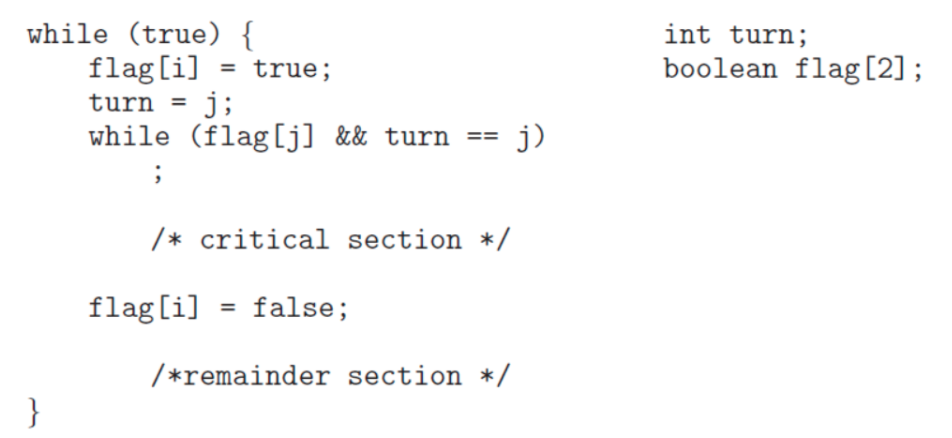 - restricted to two processes that alternate execution between their critical sections and remainder sections.