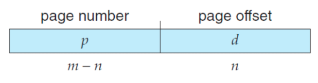 - If the size of logical address space is 2^m, and a page size is 2^n,