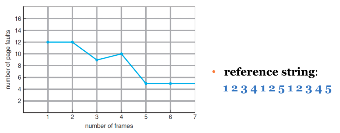 그러나 Belady's Anmaly 에서 확인할 결과, Page frame은 늘렸는데 이상하게 page fault가 더 많이 발생하는 현상이 일어난다.