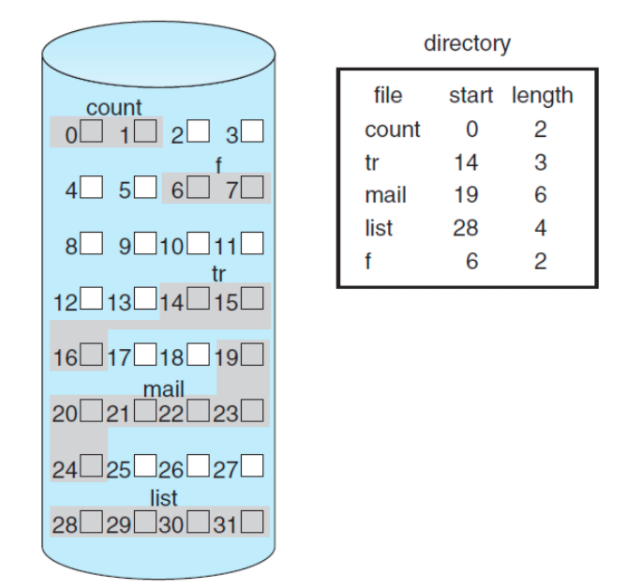 - Contiguous Allocation > 연속적으로 파일을 할당한다.