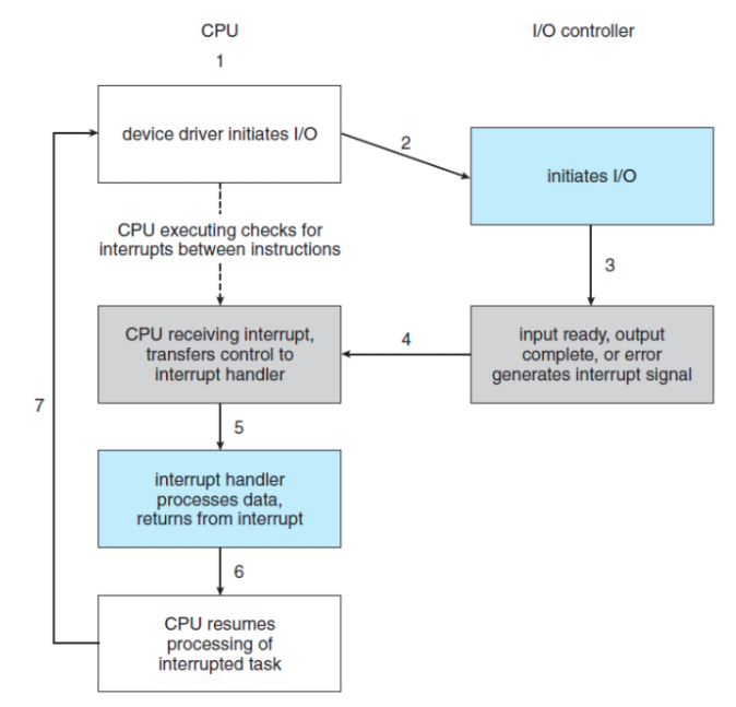 CPU가 interrupt를 확인하여, Interrupt service routine을 사용해서 처리한다.