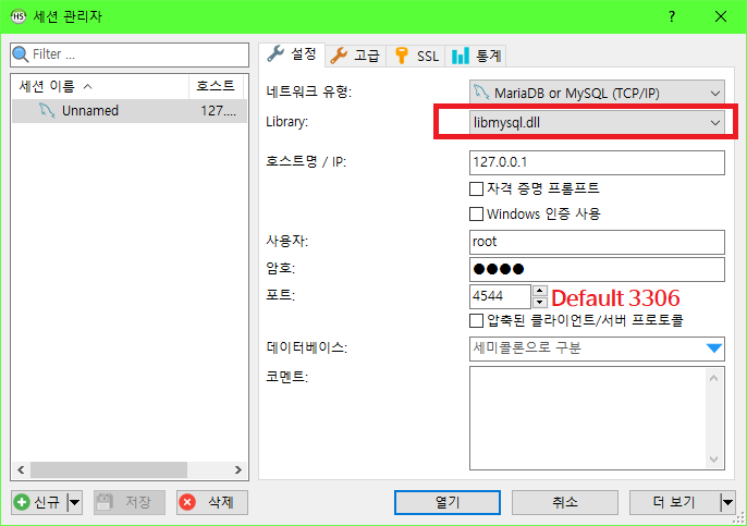 다만 저의 PC에는 이미 다른 프로그램이 3306을 사용하고 있으므로 별개의 값을 사용하겠습니다.