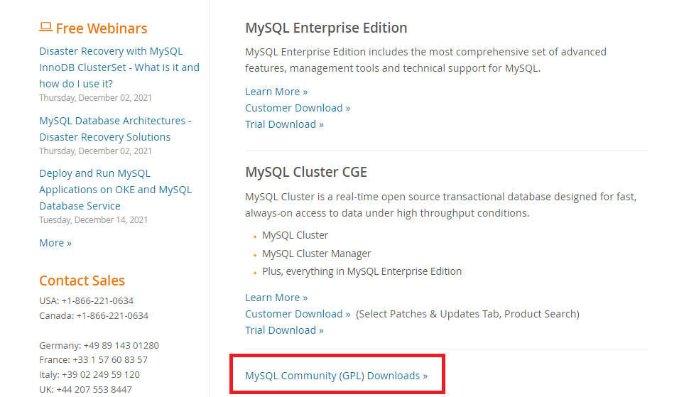 https://www.mysql.com/downloads/ 접속 후 MySQL Community Downloads 클릭.